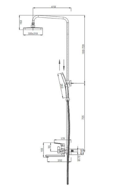 Душевая система Splenka S30.24.03, сатин золотой. Душевая система подходит для ванны и душа. Излив у системы имеет функцию переключения режима подачи воды. Верхний душ имеет прямоугольную форму размером 32 на 21 см. Ручная лейка у системы 3-х режимная. Лейки изготовлены из авс-пластика.