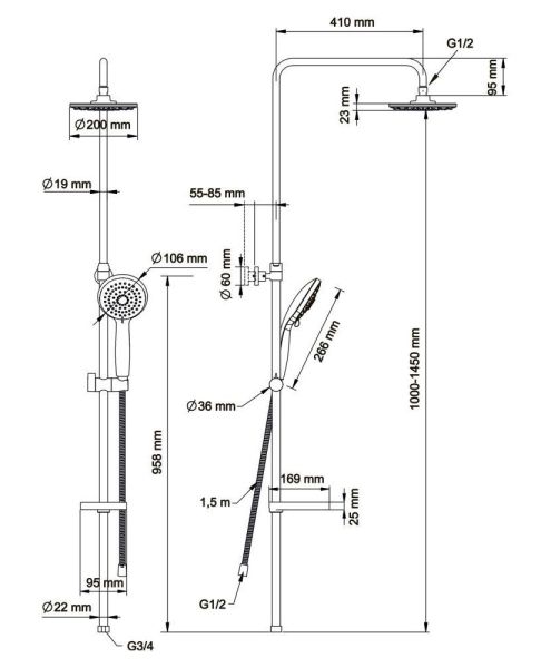 Душевая стойка Swedbe Calypso 5058 без смесителя хром/светло-серый