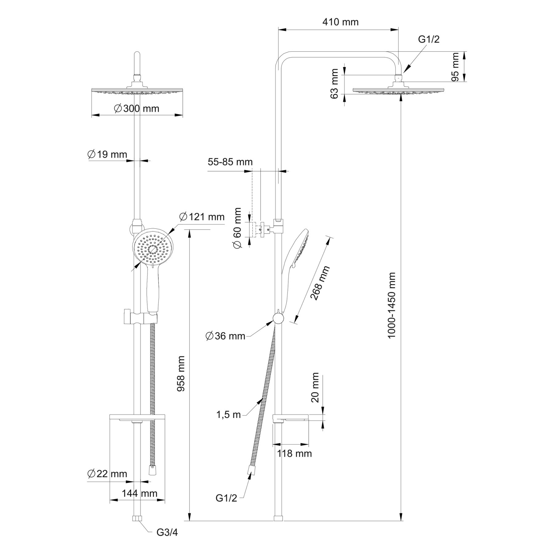 Душевая стойка Swedbe Hermes 5129G1 со смесителем для ванны хром/серый