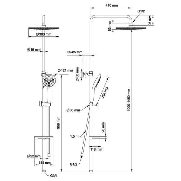 Набор семейный душ и термостатический смесительТермостатический смеситель для ванны с поворотным изливом/дивертором Hermes 9042,Семейный душ Hermes 5001 (с верхним подключением, верхний душ - диаметр 300 мм, лейка с 3D дизайном - диаметр 121 мм, 3 режима, шланг - PVС).Цвет: хром, серый