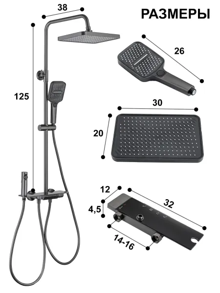 Душевой комплект содержит все необходимое для монтажа. Кроме того, наша душевая стойка с дисплеем и подсветкой имеет простой и быстрый монтаж, благодаря чему вы сможете установить ее самостоятельно без привлечения специалистов. Это позволит сэкономить время и деньги, а также получить удовольствие от процесса создания своего уютного уголка в ванной комнате.