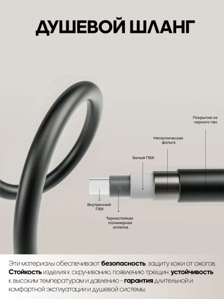 Душевой гарнитур с тропическим и гигиеническим душем Vexorus имеет возможность установки на любую поверхность. Благодаря этому вы сможете использовать ее как в ванных комнатах, так и на даче. Матовый черный цвет придает изделию особую элегантность и шарм.