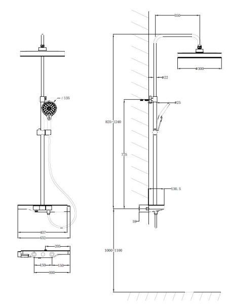 • Размер верхнего душа, см: