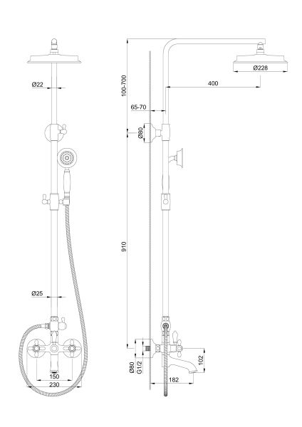 Душевая стойка Wonzon & Woghand Retro WW-88739020-BGM тёмный графит