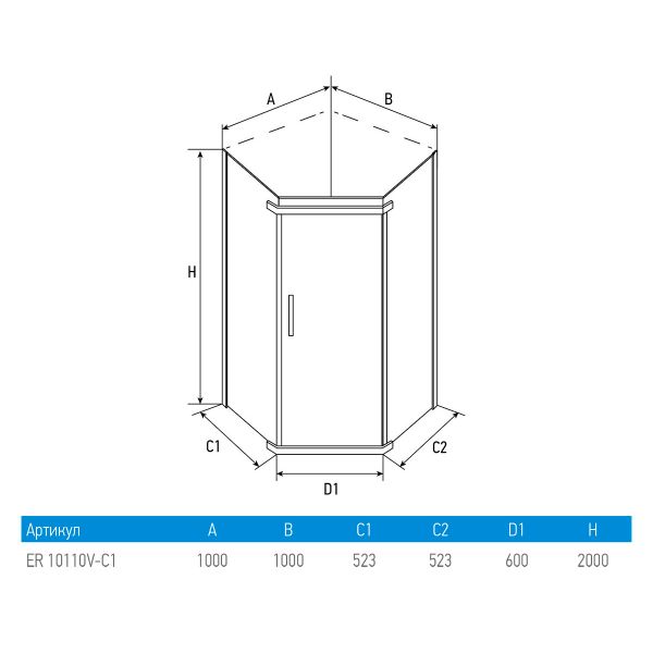 Душевой уголок Erlit Comfort ER10110V-C1 (1000x1000x2000)