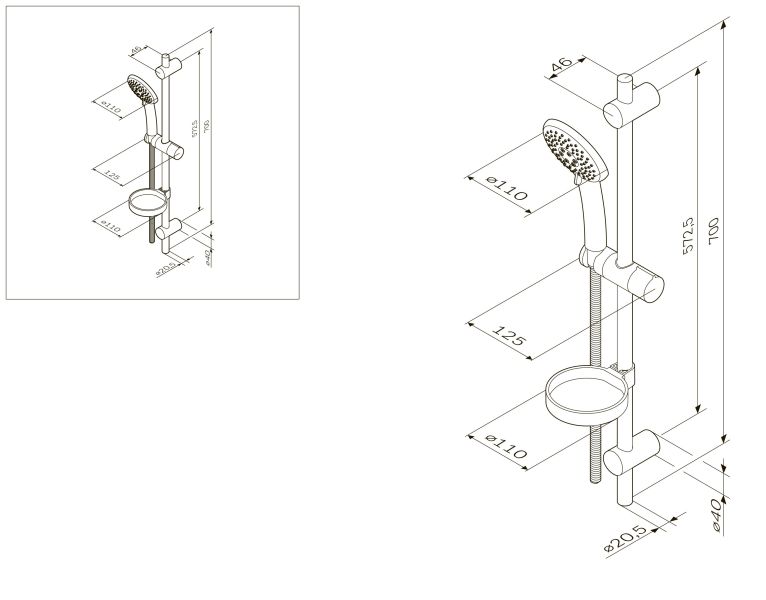 Душевой гарнитур Am.pm Like F0180064 110 мм штанга 700 мм