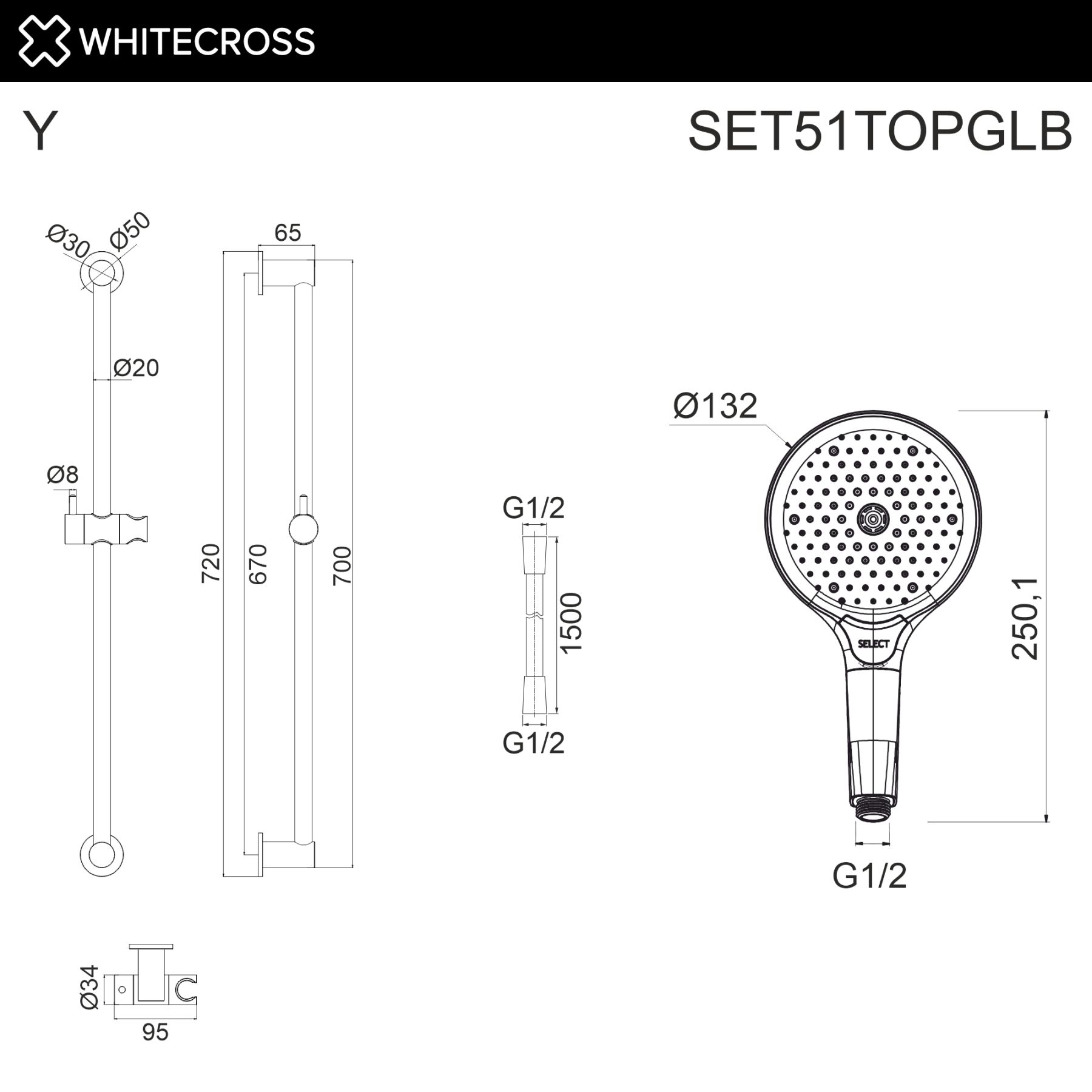 Душевой гарнитур на штанге WHITECROSS SET51TOPGM оружейная сталь