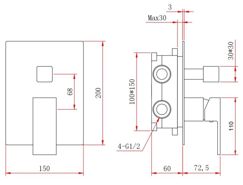 • Размер верхнего душа, см: