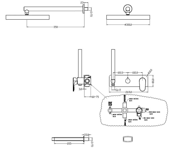 Душевая система Boheme Spectre, верхний душ, ручной душ