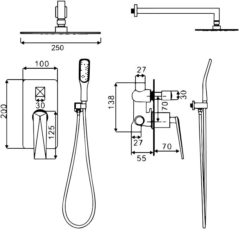Размер верхнего душа, см:25