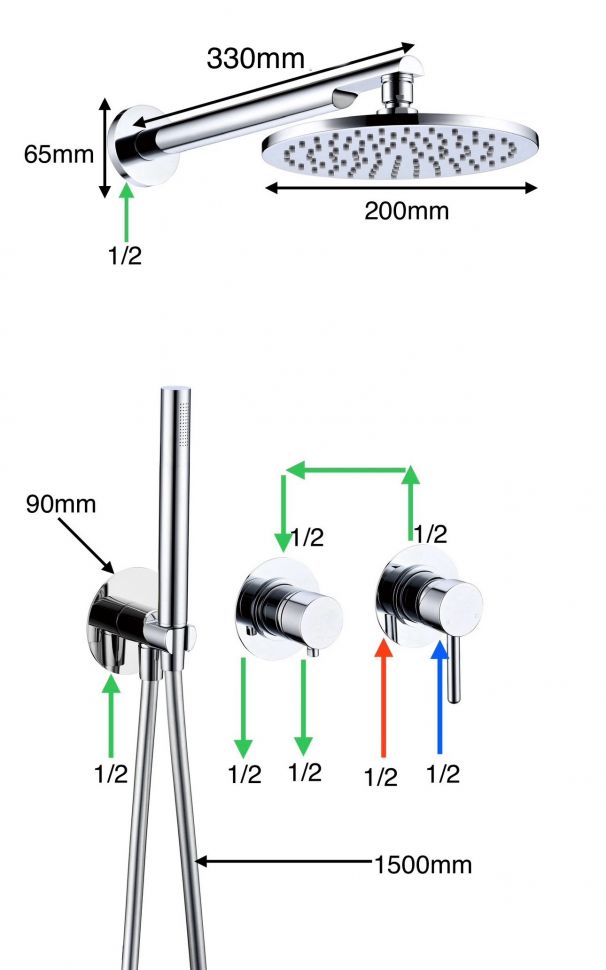 • Размер верхнего душа, см: