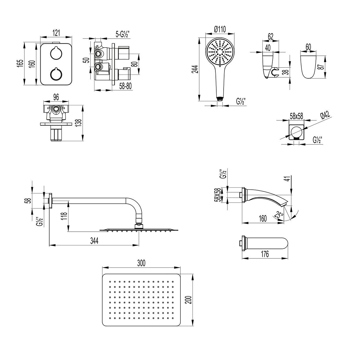 • Размер верхнего душа, см: