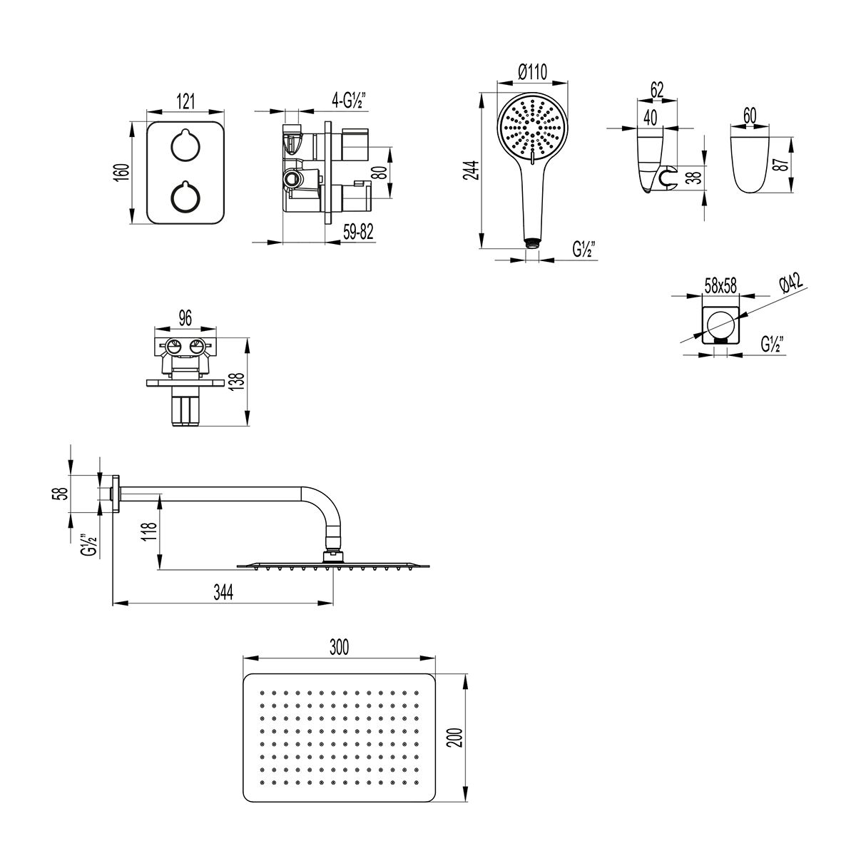 • Размер верхнего душа, см: