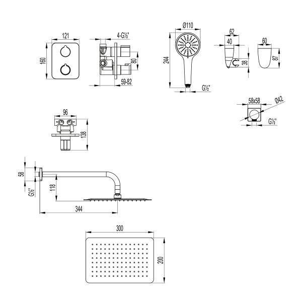 • Держатель верхней душевой лейки 334 мм