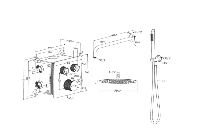 Душевой комплект Milleau Tissage TERMO 2SBIT/801-GB черный Подробнее