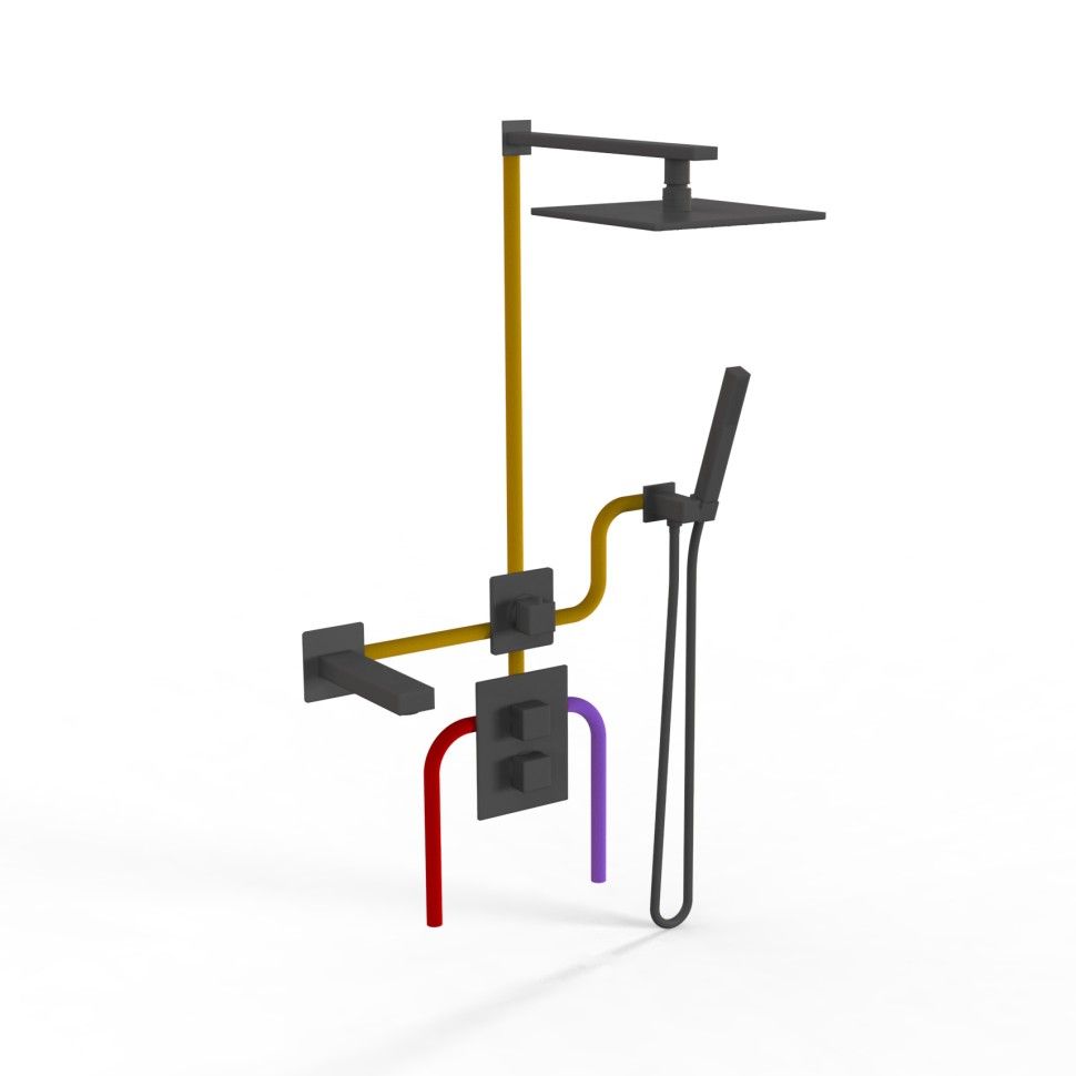 Душевой комплект Paini Grazia 21PZSET36911THSHBATH с термостатом чёрный матовый