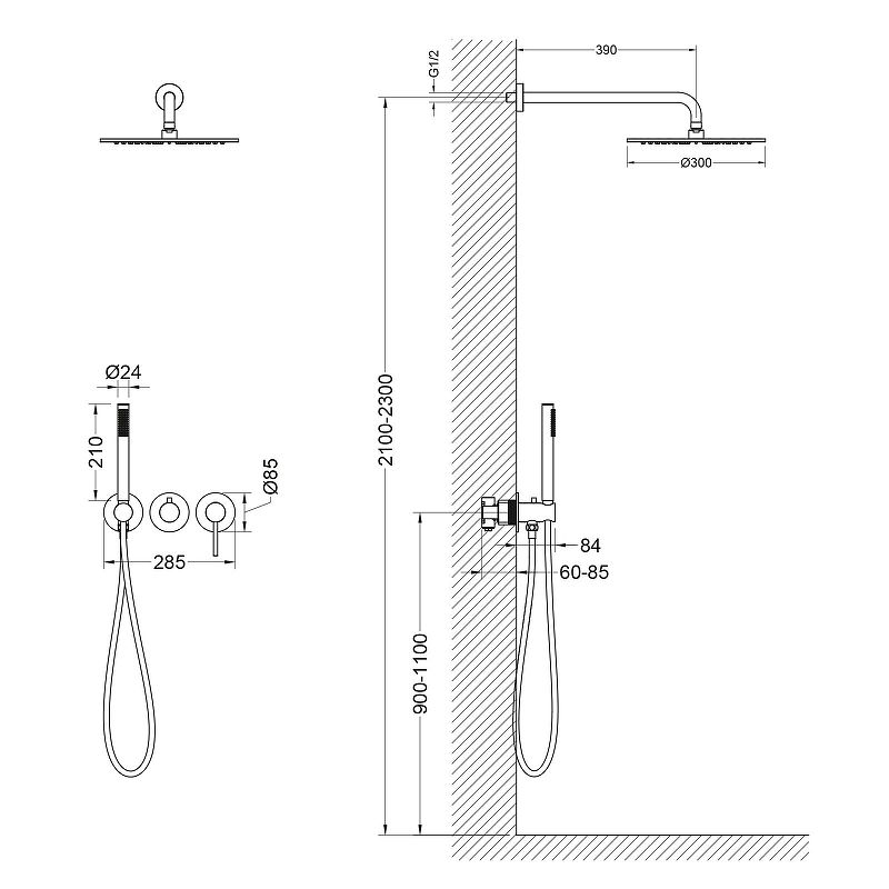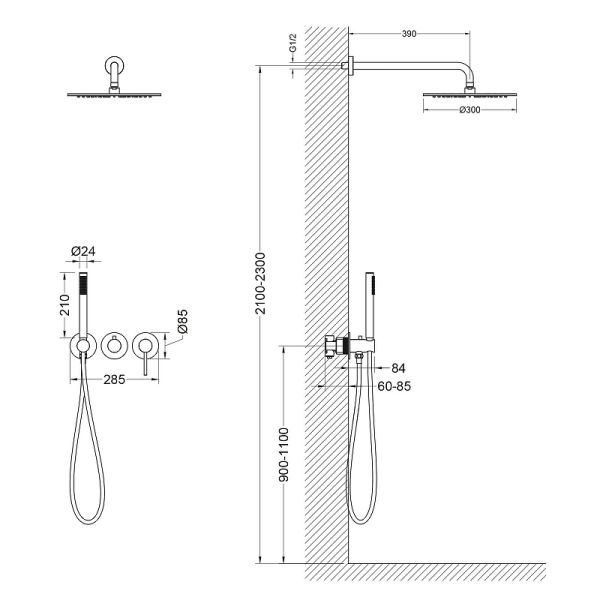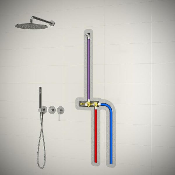• Душевая система встроенная с настенным душем с круглой лейкой в стиле модерн
