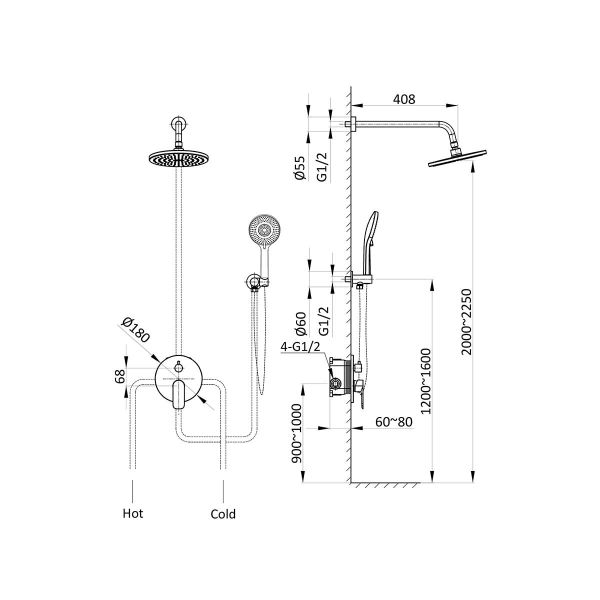 круглыйРазмер верхнего душа, мм: