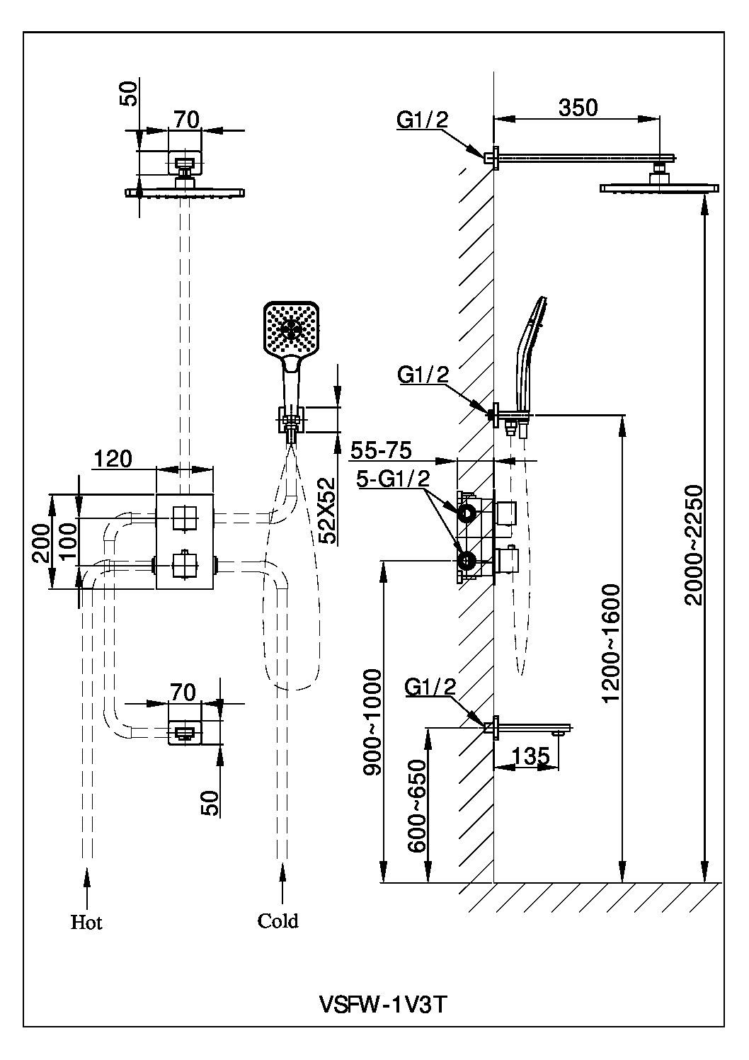 Верхний душ, ручной душ, смеситель со встраиваемой частью