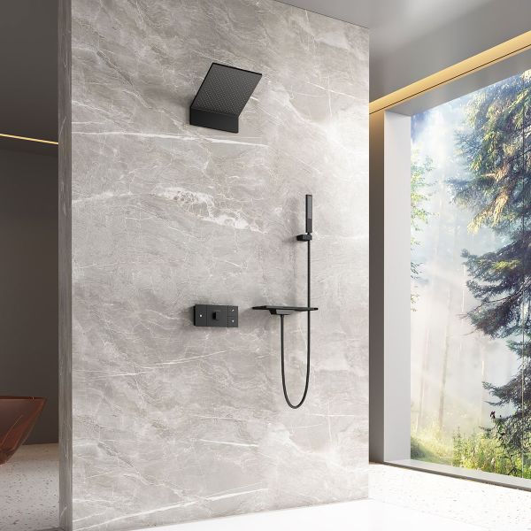 Душевой комплект Vincea Futura VSFW-2F11TMB термостатический встраиваемый, трехрежимный, черный
