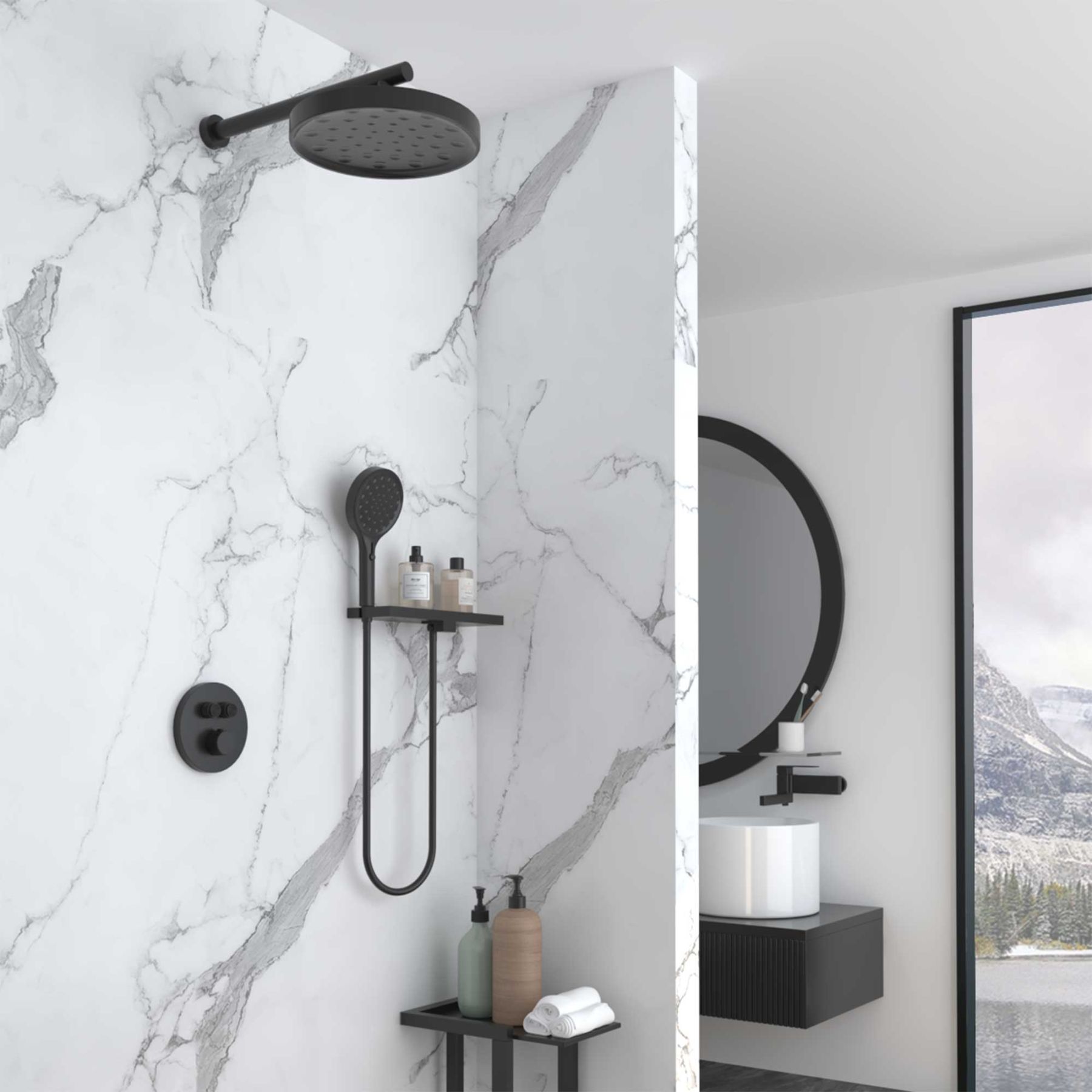 Душевой комплект Vincea Inspire VSFW-3I22MT2RMB встраиваемый, термостатический, двухрежимный, черный купить