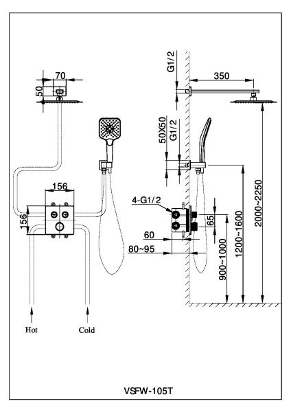Душевой комплект Vincea VSFW-105TCH термостатический встраиваемый, двухрежимный, хром