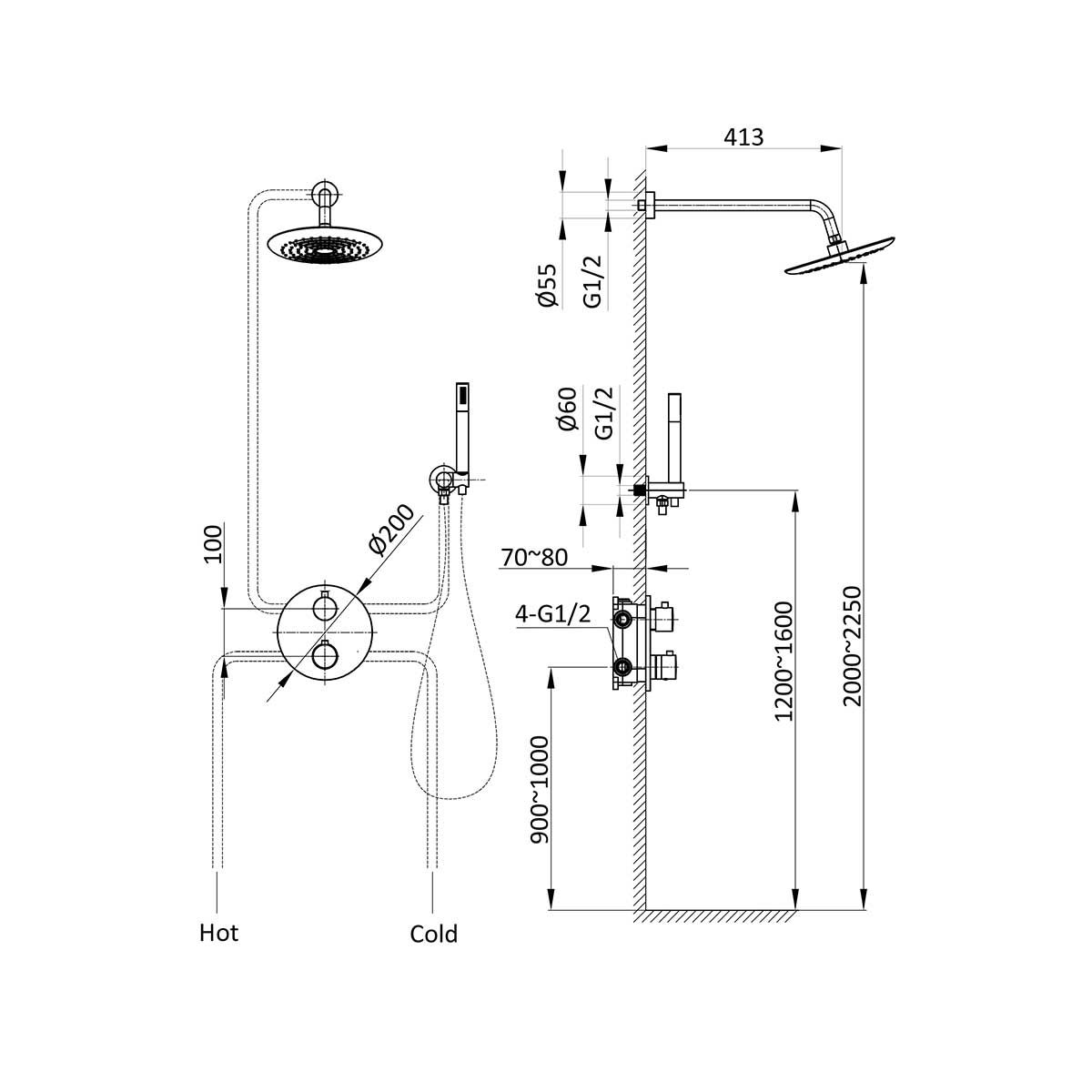 Верхний душ, ручной душ, смеситель со встраиваемой частью
