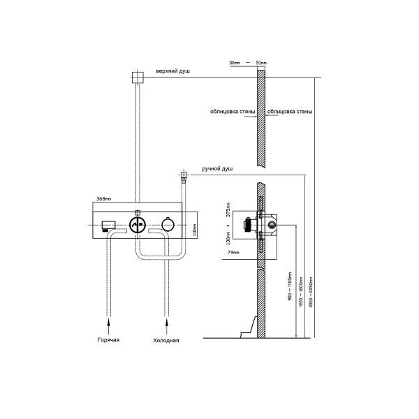 Душевой комплект Vincea VSFW-422TI2GM встраиваемый, двухрежимный, термостатический, вороненая сталь купить