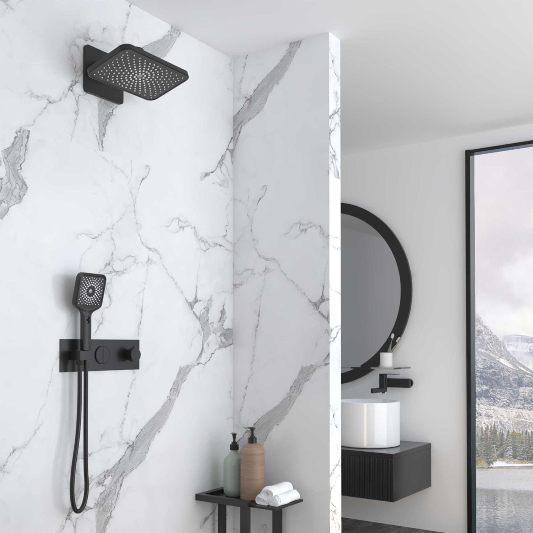 Душевой комплект Vincea VSFW-422TI4MB встраиваемый, термостатический, двухрежимный, черный купить
