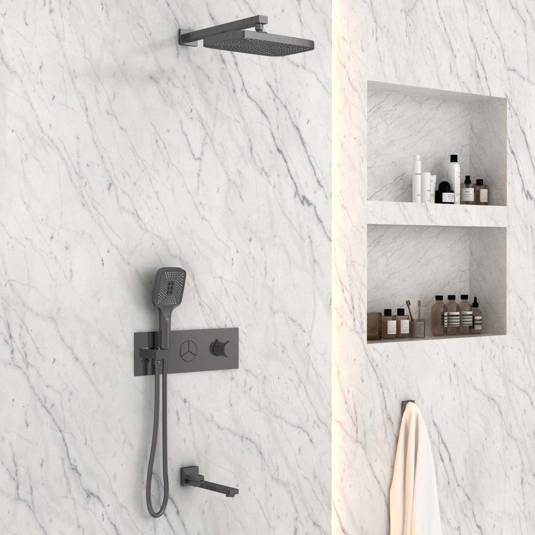 Душевой комплект Vincea VSFW-432T1GM встраиваемый, трехрежимный, термостатический, вороненая сталь