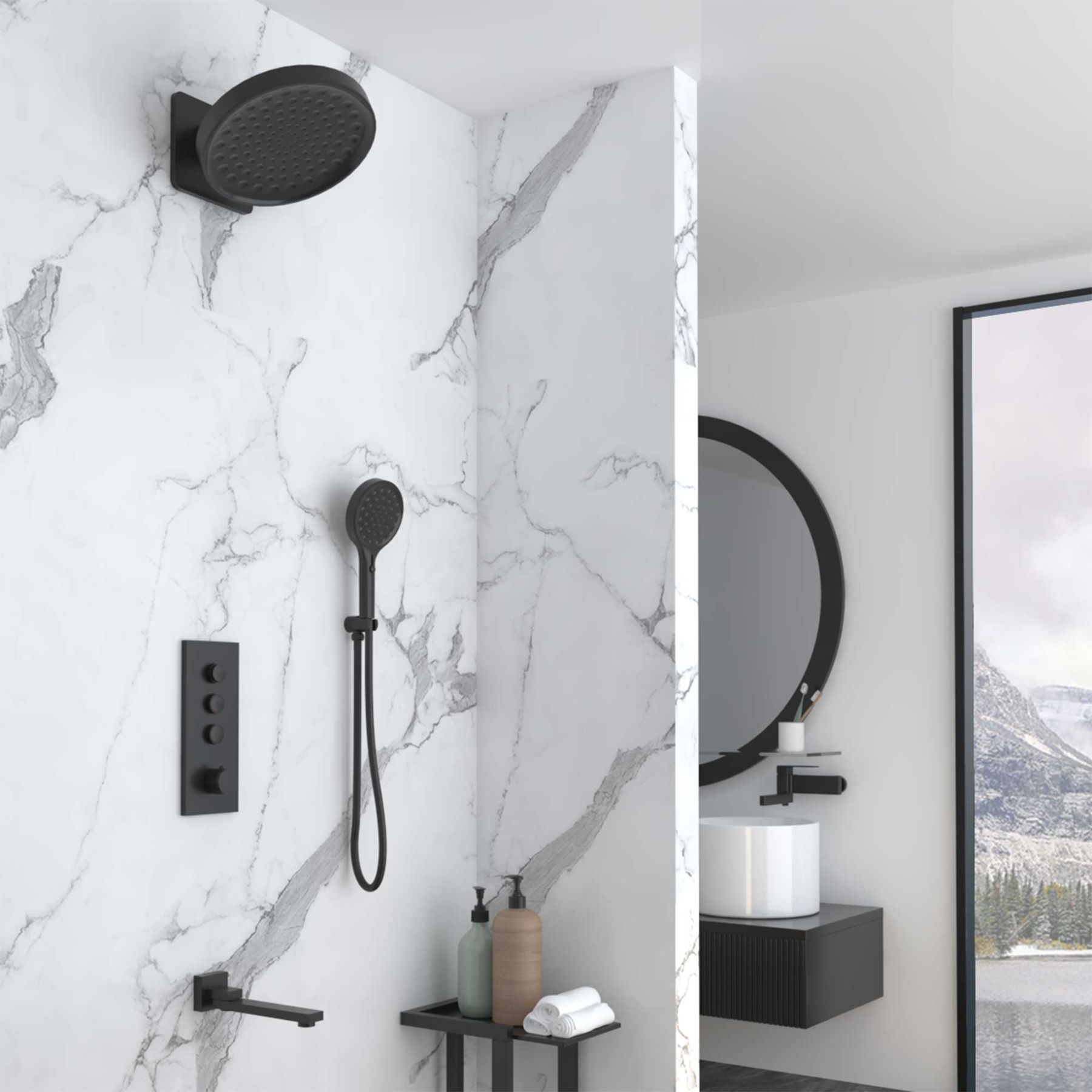 Душевой комплект Vincea VSFW-433TI3MB встраиваемый, термостатический, трехрежимный, черный купить