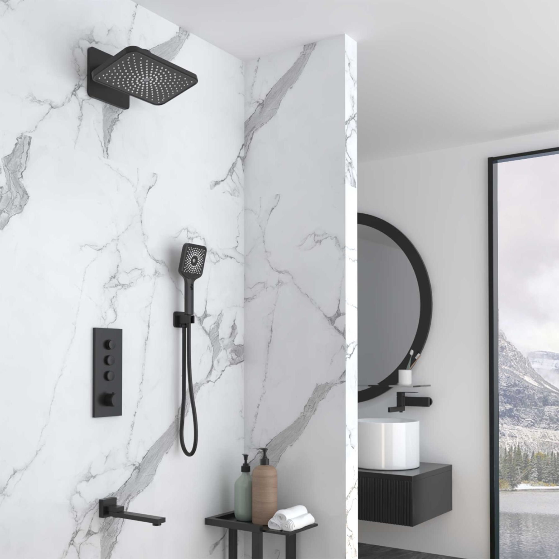 Душевой комплект Vincea VSFW-433TI4MB встраиваемый, термостатический, трехрежимный, черный купить