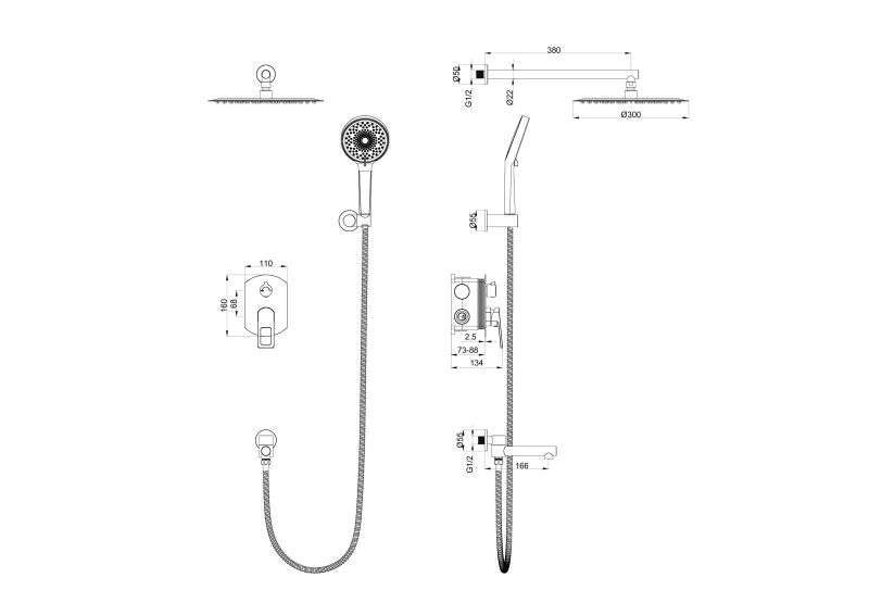 Душевая система встраиваемая WONZON & WOGHAND FRAME, Черный матовый (WW-88939010-MB)
