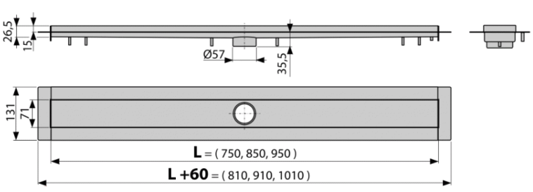 • Регулировка по высоте (от 54 мм): Позволяет точно выровнять лоток относительно финишного покрытия пола, обеспечивая идеальную интеграцию с плиткой или мозаикой.