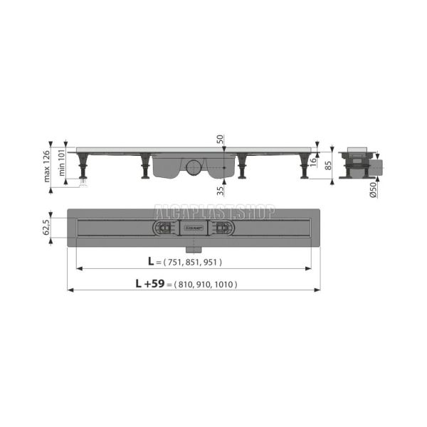Душевой лоток AlcaPlast с порогами для перфорированной решетки без гидрозатвора 95см хром APZ22-950 купить