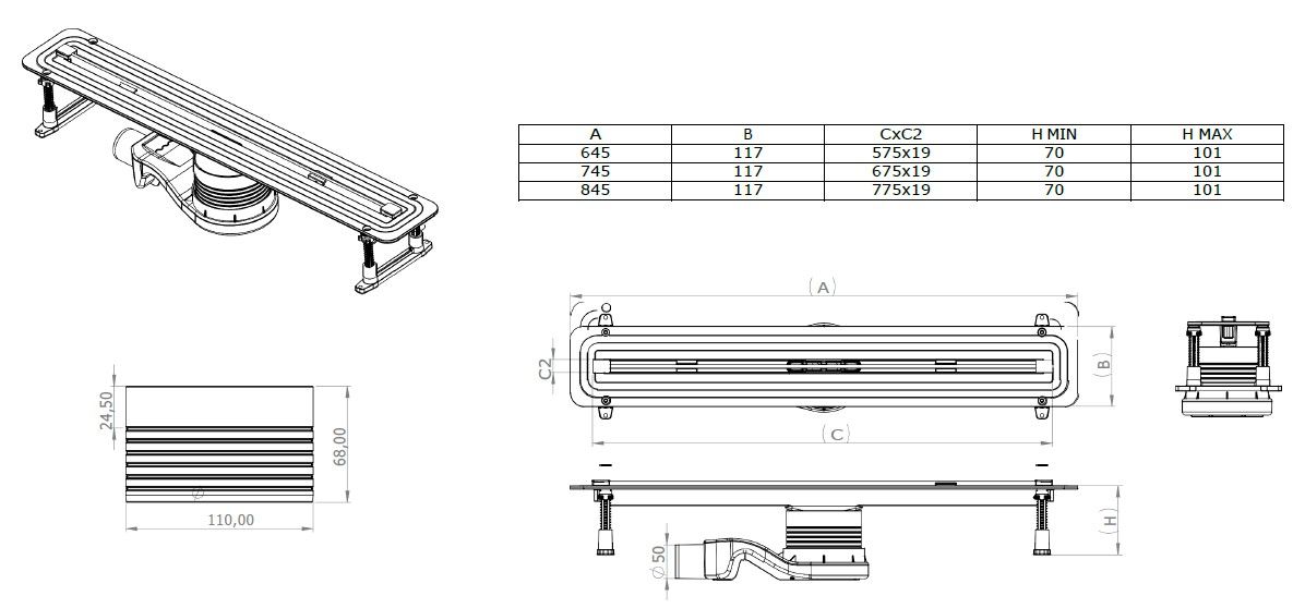Душевой лоток Allen Brau Infinity 9.50004.SS для поддона 650 мм, нержавеющая стальКласс нагрузки K=300 кг