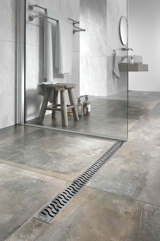 Водоотводящие желоба это атрибут для современного интерьера ванных комнат, сауны и зоны отдыха. Их преимуществом является простота установки, обслуживания и эксплуатация базбарьерной зоны. Монтаж можно производить как на открытых участках боксов и кабин, так и в близи стен. Нижняя часть изготовлена из ПП и ПС, решётка изготовлена из нержавеющей стали DIN 1.4301 K3 с возможной нагрузкой до 300 кг. Минимальная высота установки составляет 65 мм, желоб с регулировкой высоты. Комплект состоит: инструкция по установке, водоотводящий желоб, решётка, гидроизоляционный воротник по длине желоба, двойной комбинированный сифон, крепежный комплект (шурупы, дубели, рег. ножки).Характристики: * Низкая высота 65 мм
