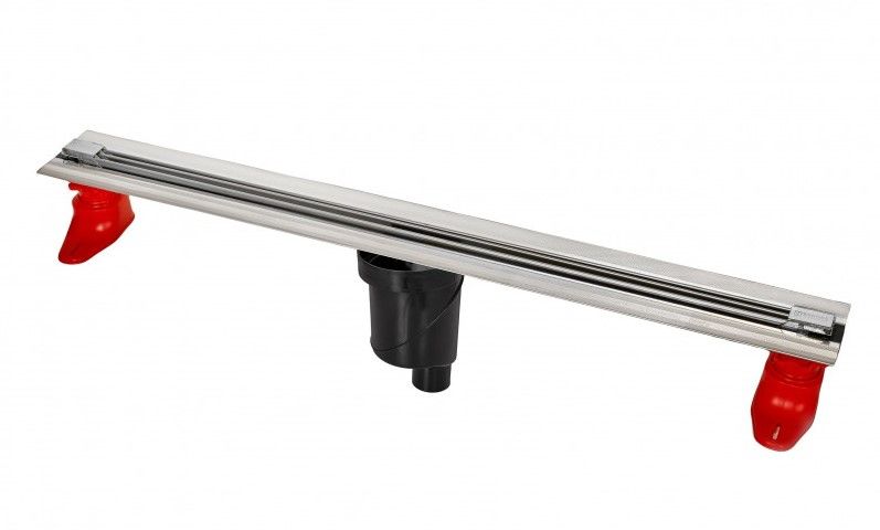 Решетка и декоративные заглушки, нержавеющая сталь AISI 304Комплект регулировки решетки по высоте от 8 до 30ммСетка для волос, пластикКомплект гидроизоляцииЖелоб водосток, нержавеющая сталь AISI 304Монтажная заглушка, пенопластРегулируемые по высоте ножки, пластикСамопромывной S-образный сифон PPВертикальный выпуск 48 л/мин , пропускная способность 42л/мин, монтаж 360°Монтажный ключ, пластик