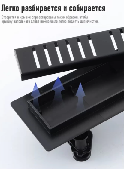Душевой трап Gappo G87007-56 с решеткой из нержавеющей стали линейного типа. Компактный, но очень эффективный. Гарантирует скорость слива 30 литров в минуту. Гидрозатвор комбинированный, то есть сухой и мокрый. Не пропускает запахи канализации в помещение. Его легко чистить, так как он просто разбирается.