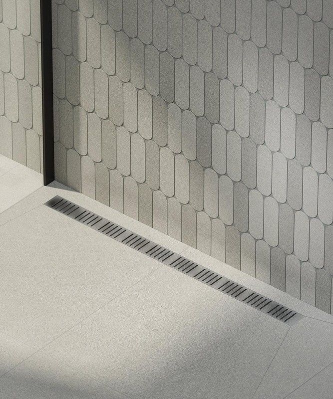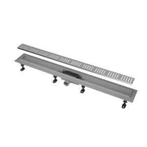 Душевой лоток с двусторонней решеткой из нержавеющей стали используется для отвода воды из душевой зоны с безбарьерным доступом. Решётку можно установить двумя способами: в первом случае сверху — полоса из цельной нержавеющей стали, во втором — закреплённая на решётке плитка или мозаика толщиной до 12 мм. Водоотводящий жёлоб выполнен из нержавеющей стали, прошедшей электрохимическую обработку. Комбинированный гидрозатвор обеспечивает надежную защиту от проникновения запаха. Высота монтажа до 81 мм. Регулируемые монтажные ножки позволяют быстро и удобно установить желоб и выровнять его по горизонтали.