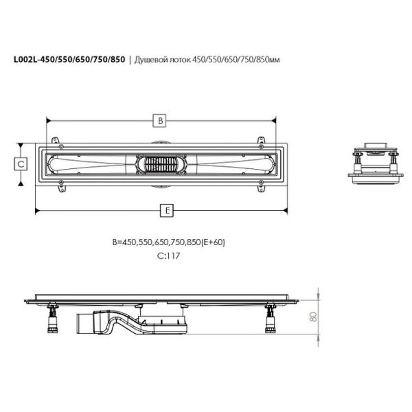 Душевой лоток Logan L002L-550.Характеристики:Цвет решетки: нержавеющая сталь.