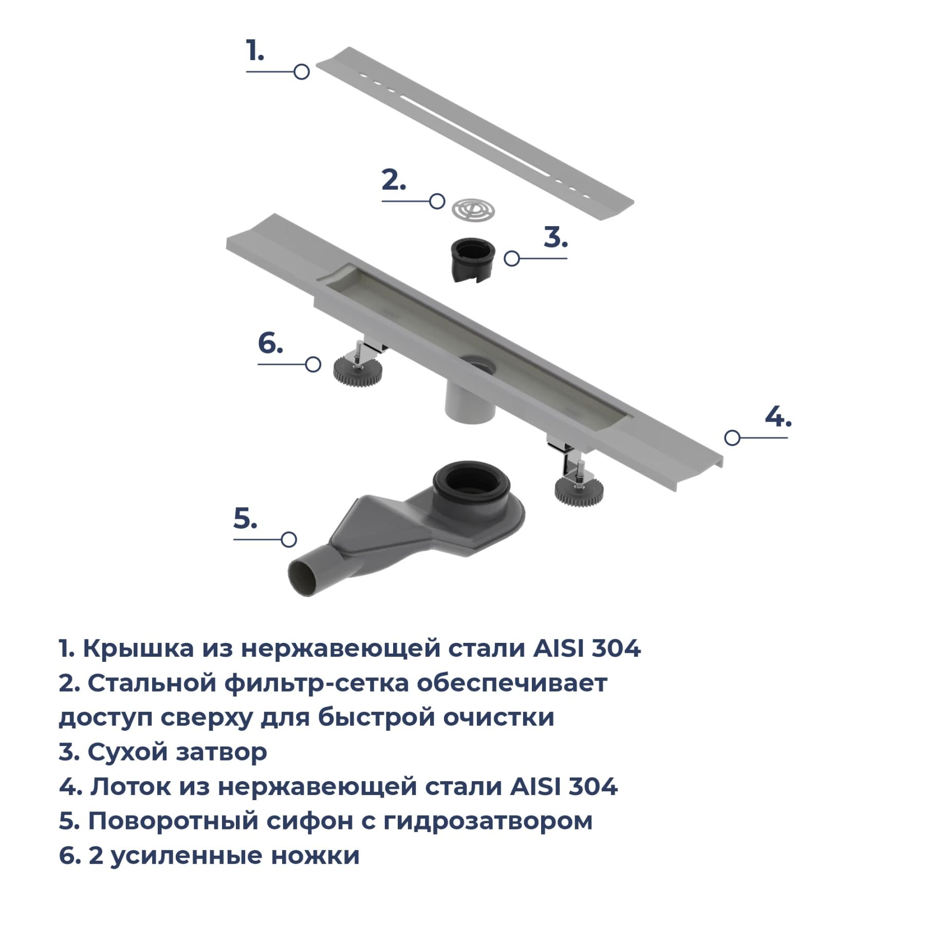 • Две усиленные опоры из нержавеющей стали с регулировкой высоты