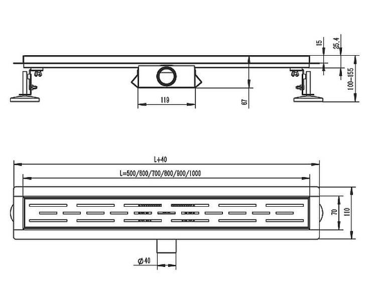 Трап изготовлен из высококачественной нержавеющей стали, в коллекции цвета трапа представлены в нескольких вариантах - черный матовый и сатиновый. Линейный трап под кладку плитки для душа предназначен для отвода воды с пола или поддона под душем. Широкий диапазон регулировки по высоте позволяет устанавливать трап в новых ванных комнатах. Индивидуально регулируемые ножки обеспечивают беспроблемную установку, даже в тех случаях, когда Вы сталкиваетесь со значительными неровностями в различных частях монтажной поверхности. Трап обеспечивает свободный слив воды в канализационную систему, также собирая мусор, не давая ему засорять сливные каналы. Принцип работы сухого затвора: легкий поплавок диаметром больше сливного отверстия опускается и закрывает трубу в случае высыхания воды. В рабочем положении вода поднимает и удерживает поплавок на одном уровне и система работает, как один из вариантов гидрозатвора. Если трап не используется, то вода из затвора испаряется, а поплавок закрывает сливное отверстие. Выпуск: горизонтальный. Материал корпуса: нержавеющая сталь. Защита от запаха: сухой+гидрозатвор.