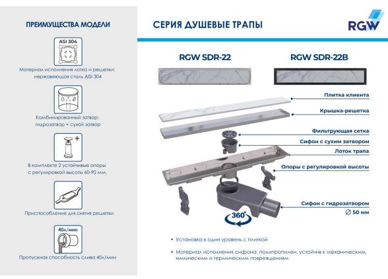 Душевой лоток RGW SDR-22B 47212240-04 40см под плитку чёрный купить