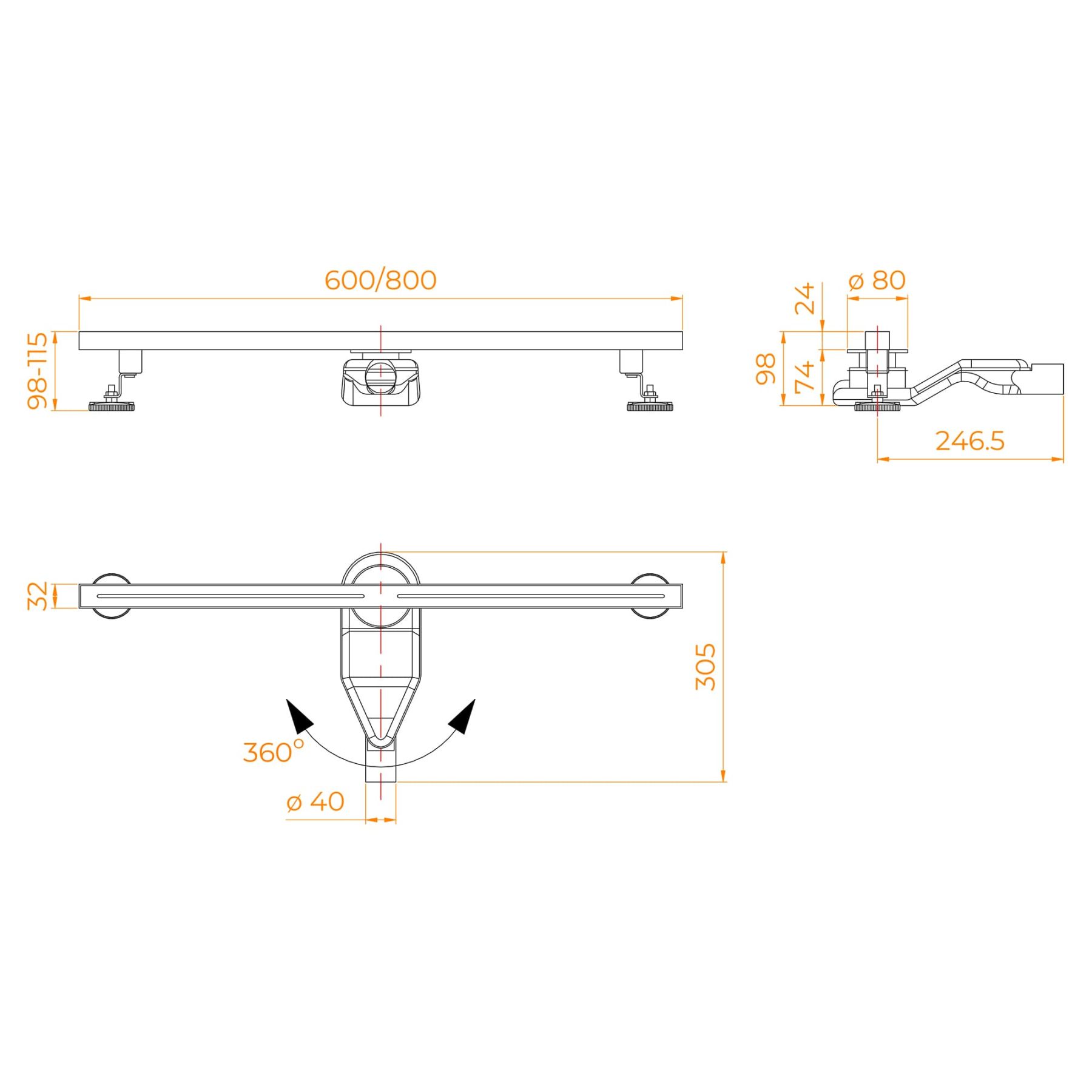 • Две усиленные опоры из нержавеющей стали с регулировкой высоты