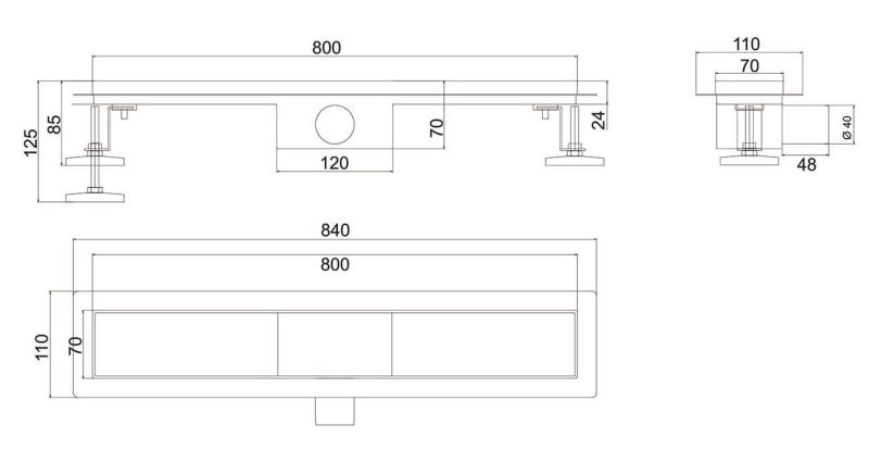 Душевой лоток РМС ТЛ-03-80х7 80см нержавеющая сталь
