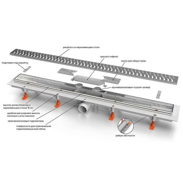 Душевой лоток Veconi Medium 350 V350M с решеткой Хром глянцевыйХарактеристики:Цвет решетки: хром глянцевый.