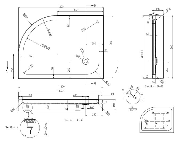 Душевой поддон Azario VICTORIA P2912 L 120х90 см