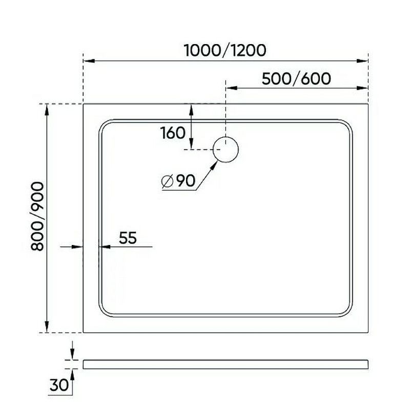Диаметр сливного отверстия: 90 мм.