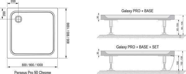 Поддон Perseus Pro Chrome подходит для душевых уголков SRV2-S+SRV2-S, ASRV3+ASRV3, BLRV2K+BLRV2K, MSRV4 80, 90, 100, CRV1+CRV1, CRV2+CRV2, SMSRV4, BSRV4, BSDPS, 10RV2+10RV2, 10RV2K+10RV2K, NRKRV2 и ванных комнат с душевыми дверьми ASDP3, SDZ3, SDOP, BLDP2, PDOP1, PDOP2, CSD1, CSD2, CSDL2, SMSD2 100, BSD2, 10 DP2(+10PS), NRDP2.